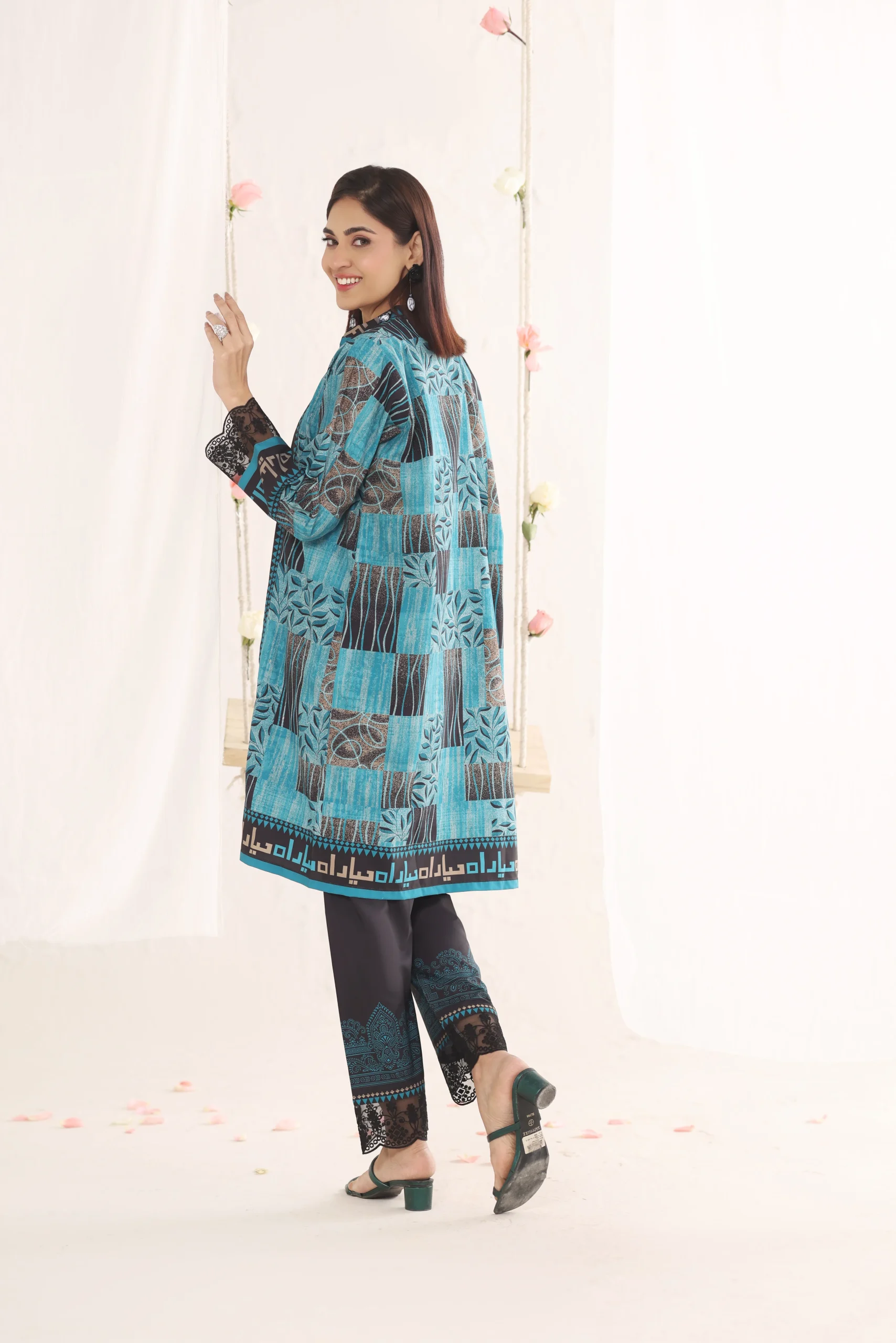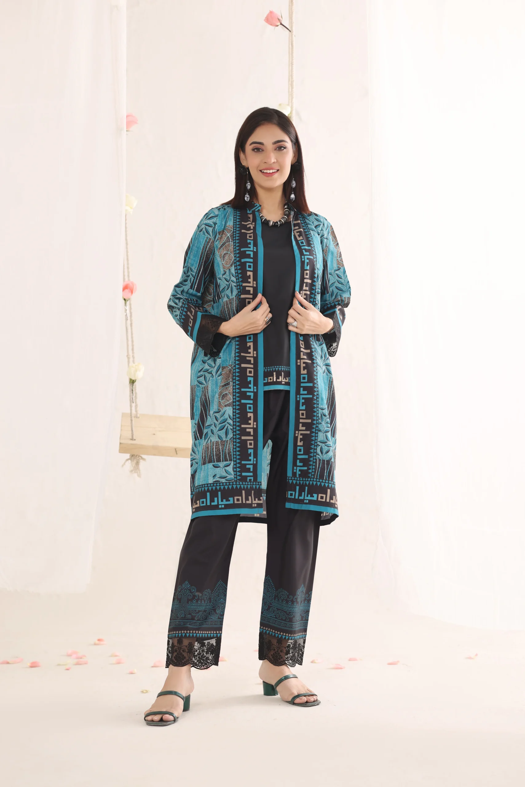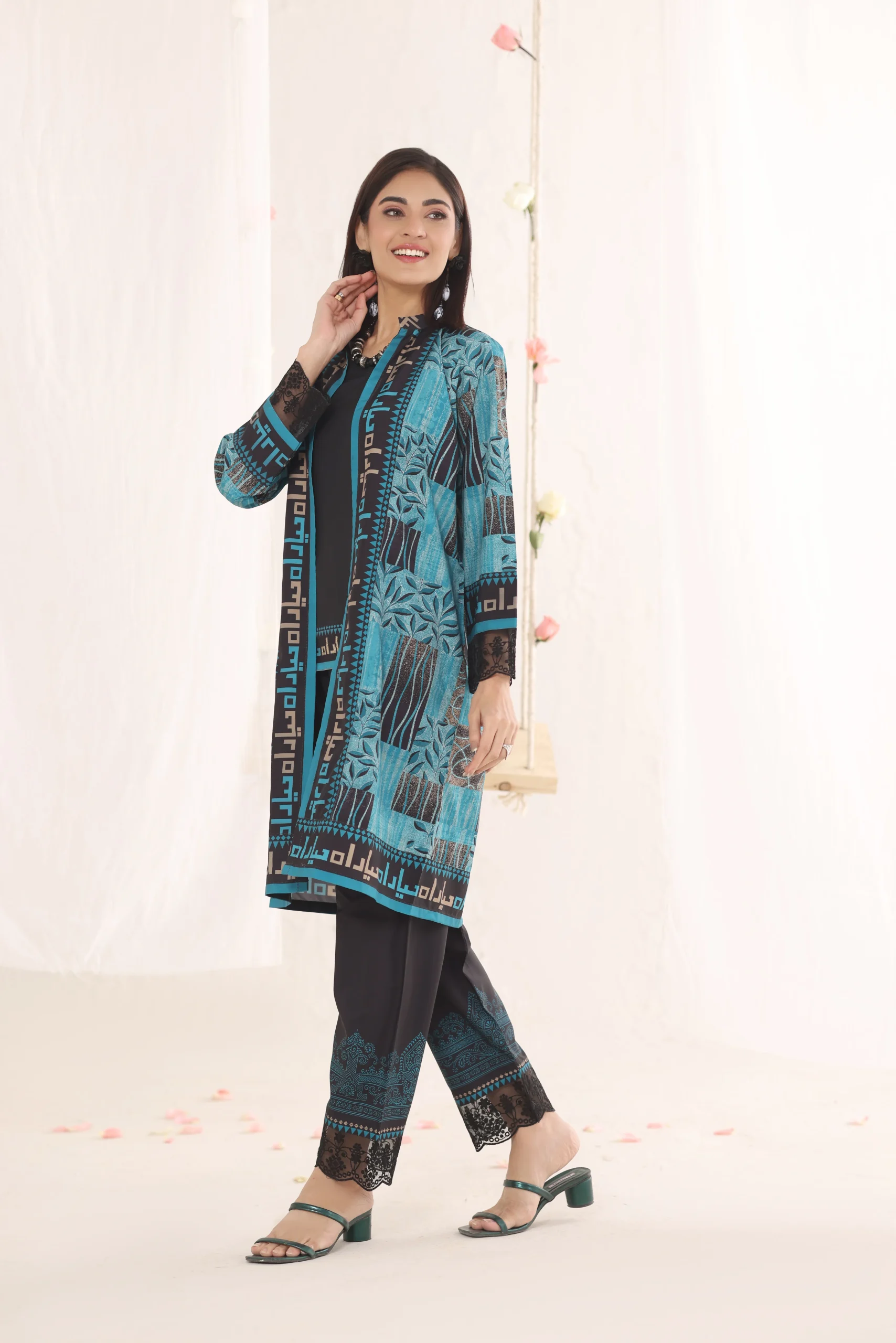 Kaira features striking motifs balanced by sharp, clean lines. The tailored cut defines the silhouette beautifully. Thoughtful detailing adds depth and dimension to the overall look. A statement ensemble for polished, powerful styling.Additional information