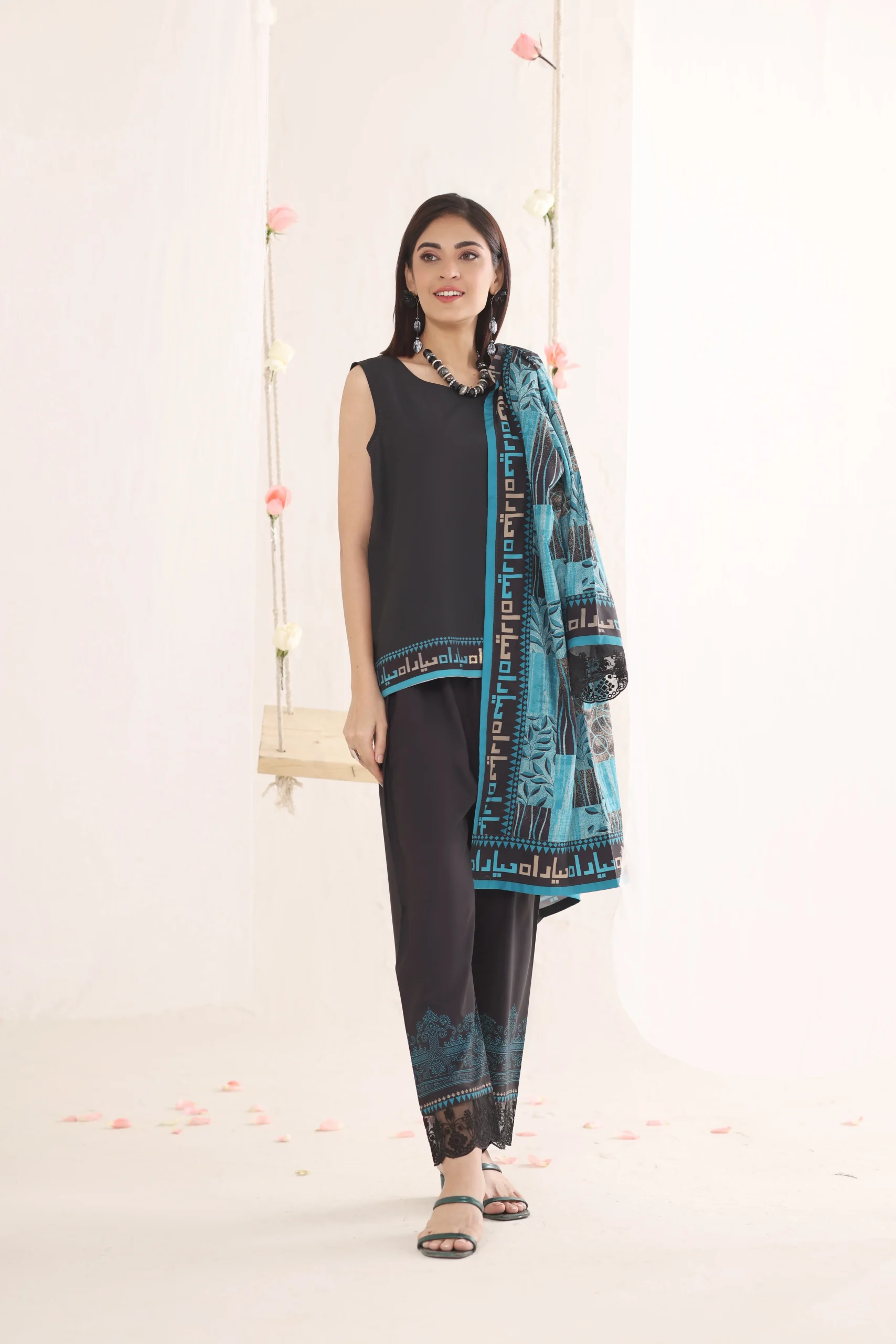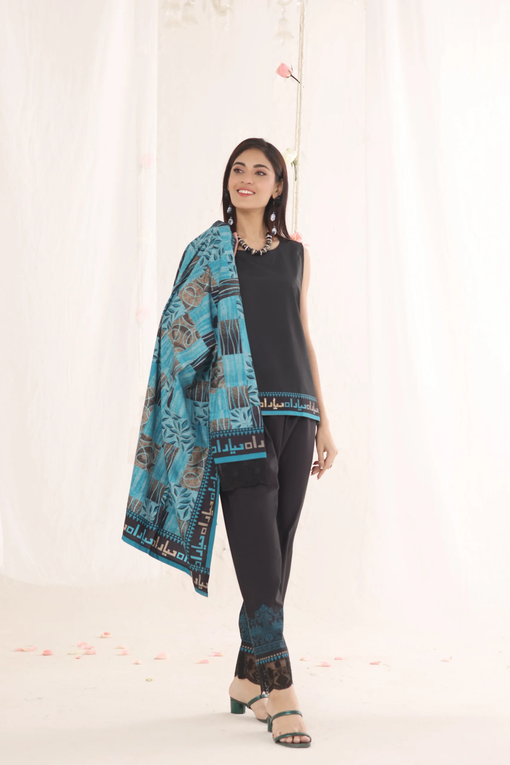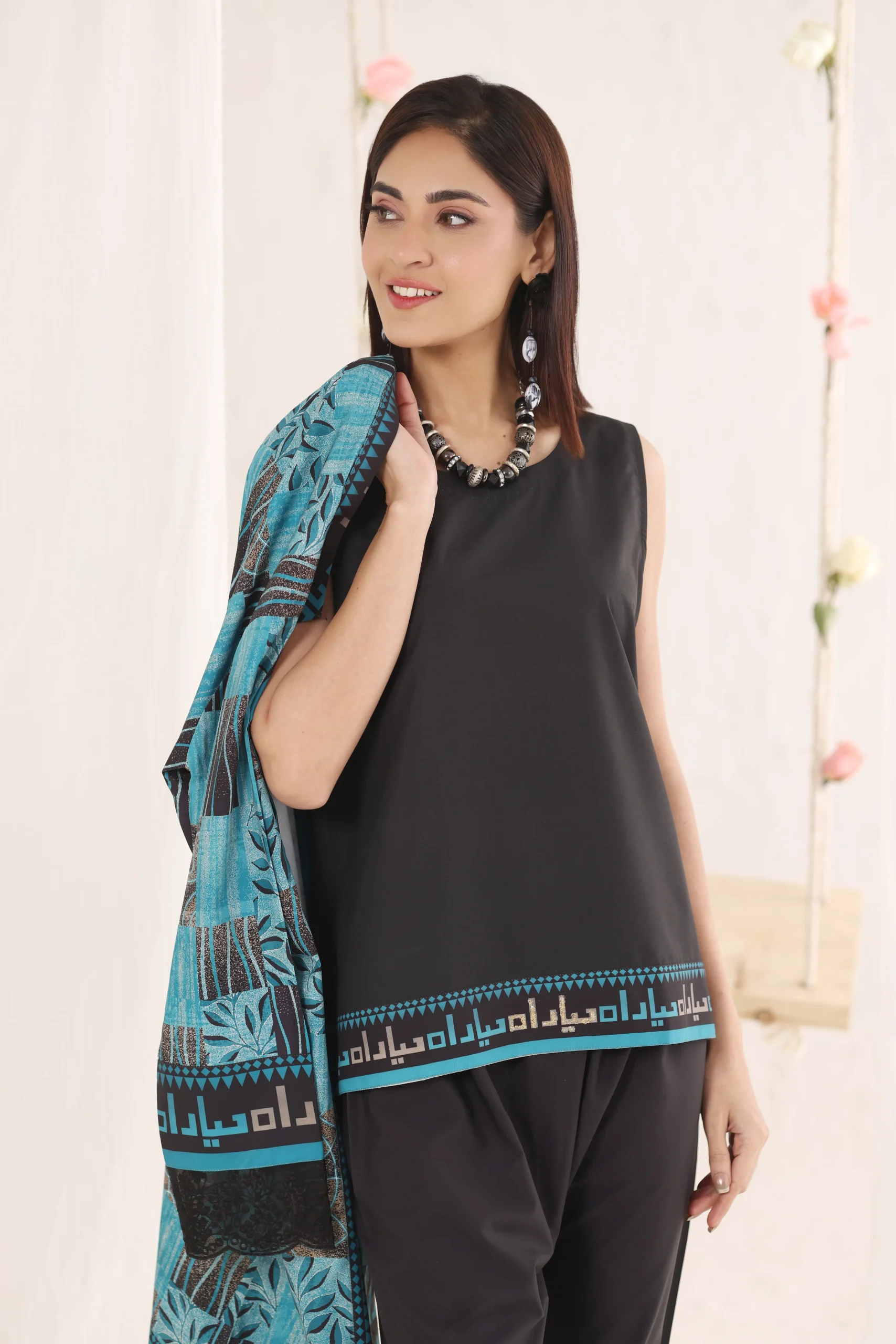 Kaira features striking motifs balanced by sharp, clean lines. The tailored cut defines the silhouette beautifully. Thoughtful detailing adds depth and dimension to the overall look. A statement ensemble for polished, powerful styling.Additional information
